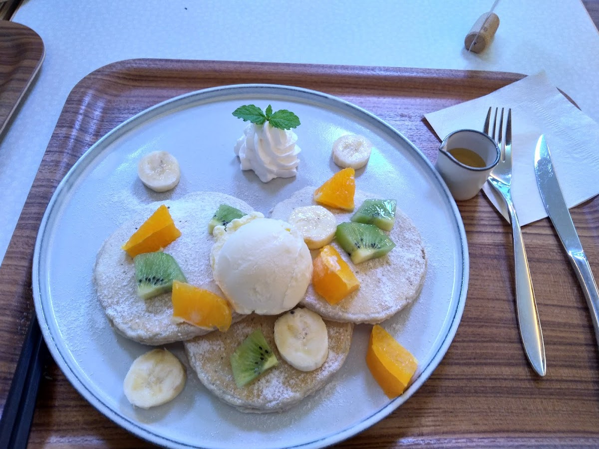 For those with a sweet tooth, you cannot miss out on the famous 九州パンケーキ (Kyushu Pancakes). Priced at JP¥780 when paired with a drink, these fluffy pancakes are a heavenly treat. You have the option to elevate your dish with maple syrup or agave syrup for an added touch of sweetness, making each bite a blissful experience. Adding a scoop of vanilla ice cream and fresh fruits transforms it into a delightful dessert for just JP¥1000.